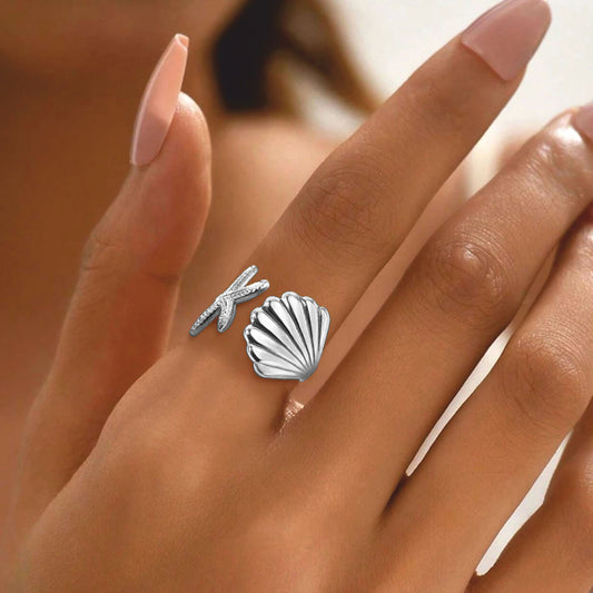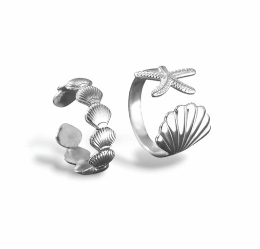 Conjunto Anel Mare e Anel Shells - em aço inoxidável