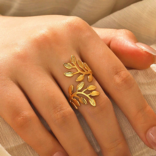 Conjunto Anel Mare e Anel Shells - em aço inoxidável dourado