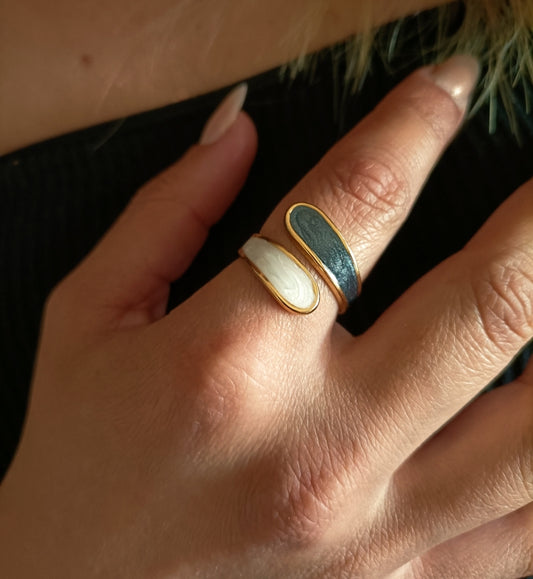Anel Black & White - em aço inoxidável