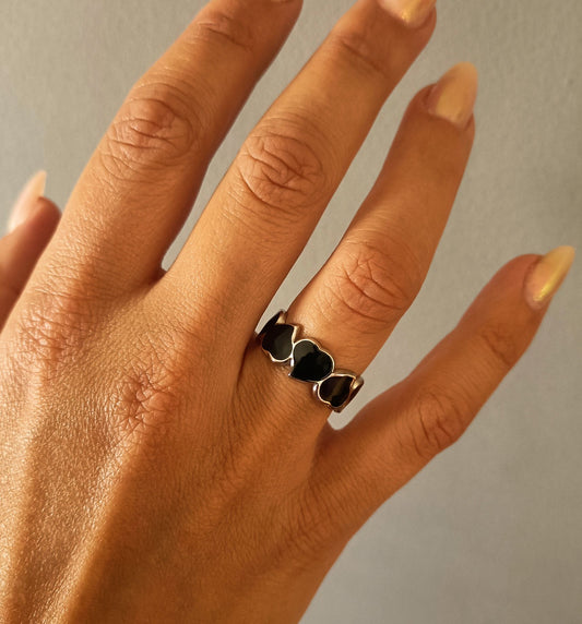 EsgotadoAnel Black Heart - em aço inoxidável