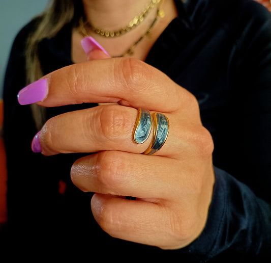 Anel Eos Cyan - em aço inoxidável