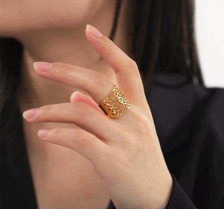 Anel Selene - em aço inoxidável dourado