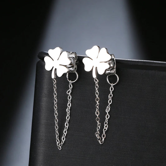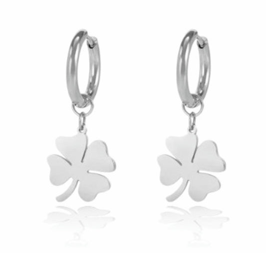 Brincos Silver Clover - em aço inoxidável