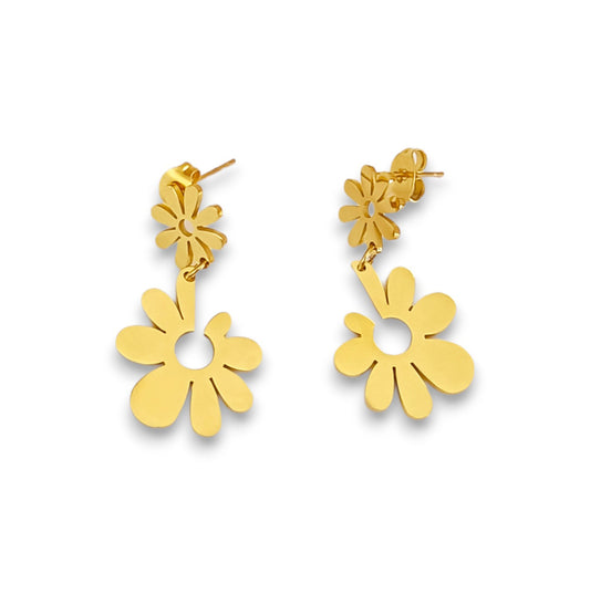Brincos Two Flowers Gold - em aço inoxidável