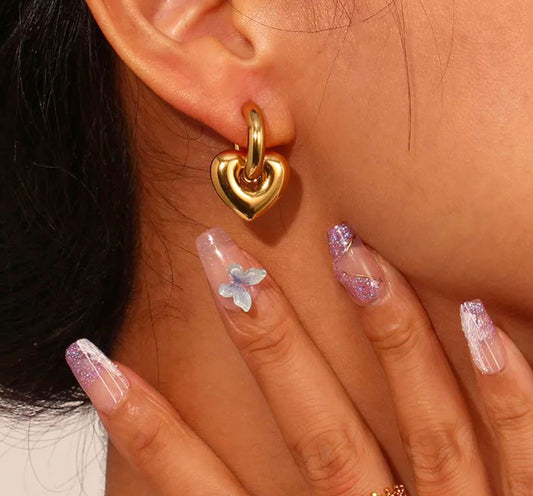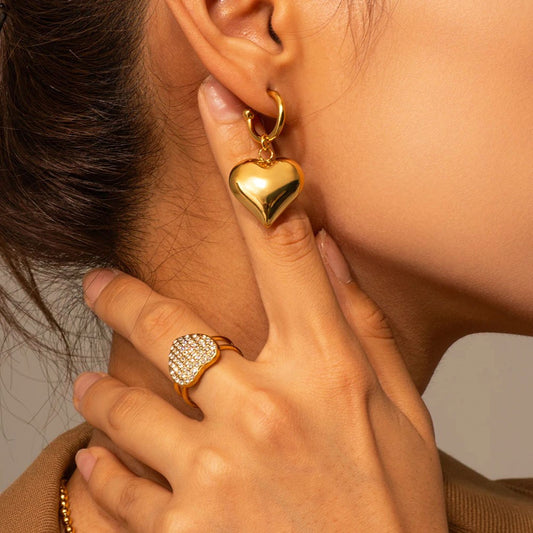 Brincos Golden Heart- em aço inoxidável