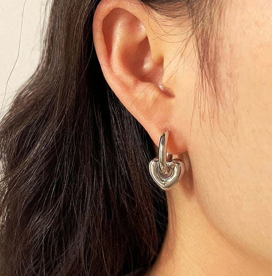 Brincos Silver Heart- em aço inoxidável
