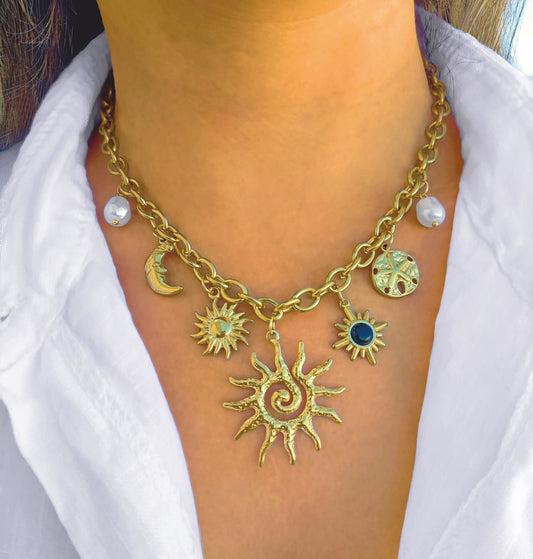 Colar Blue Love - em aço inoxidável & pedras naturais