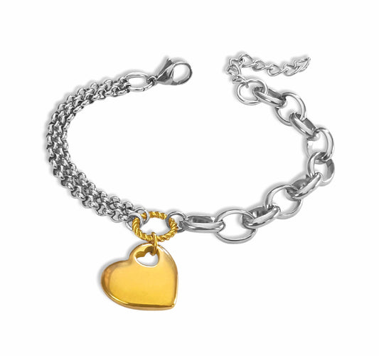Pulseira Three Hearts - em aço inoxidável dourado e prateado