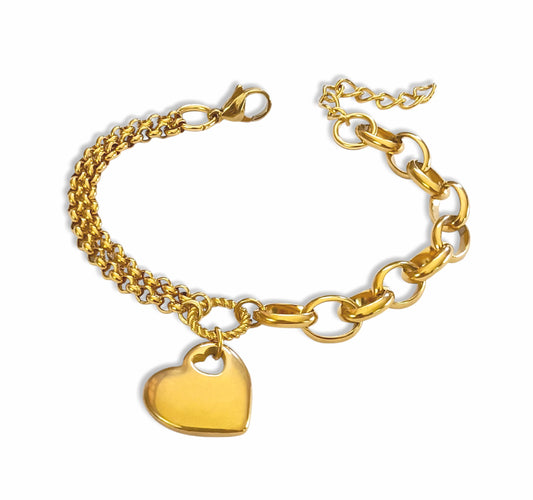 Pulseira Three Hearts - em aço inoxidável dourado