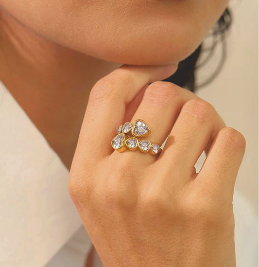 Anel Corazon Cristalino - em aço inoxidável