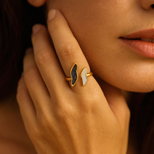 Anel Amélie Black & White - em aço inoxidável