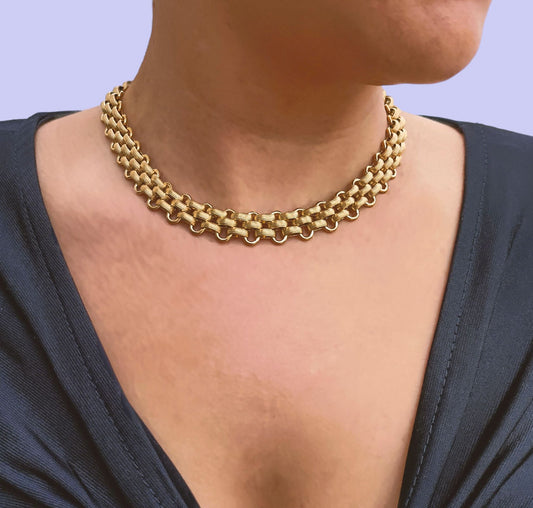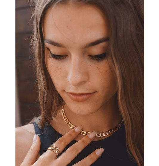 Conjunto Colar e Pulseira Wide Chain - em aço inoxidável dourado