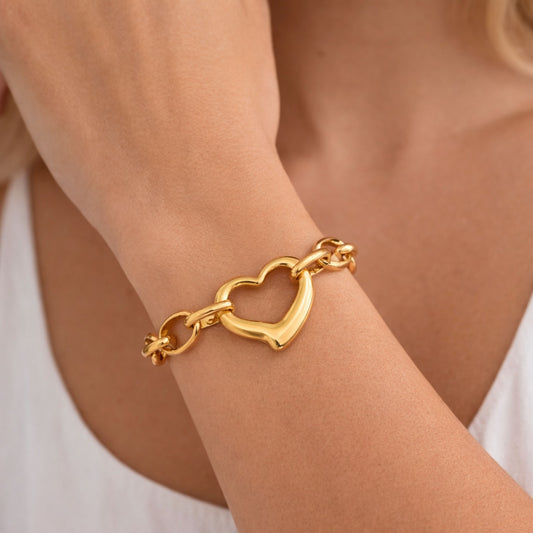 Pulseira Three Hearts - em aço inoxidável dourado