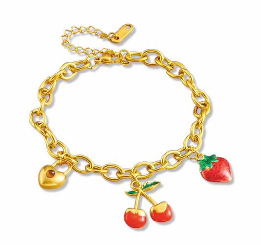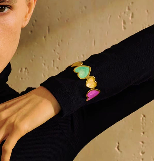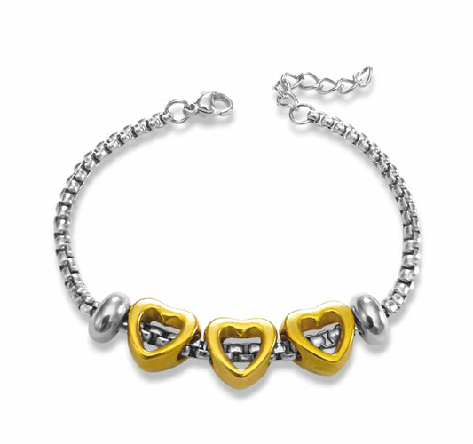 Pulseira Three Hearts - em aço inoxidável dourado e prateado