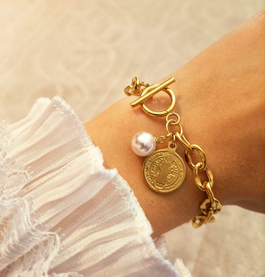 Pulseira Lady of Graces - em aço inoxidável dourado