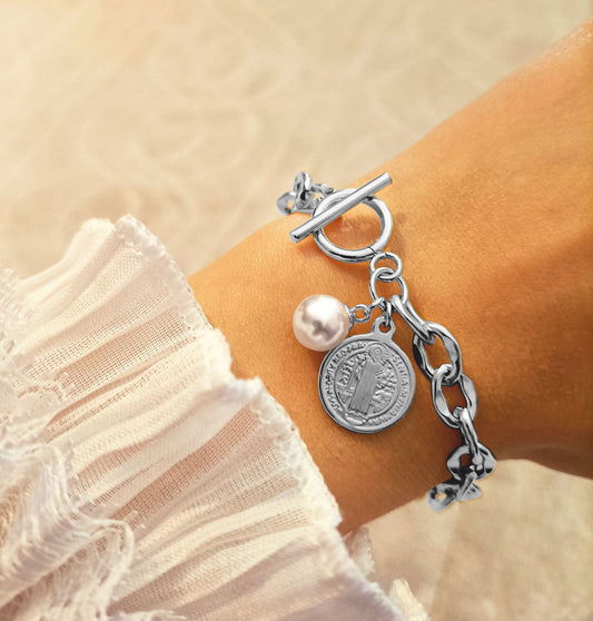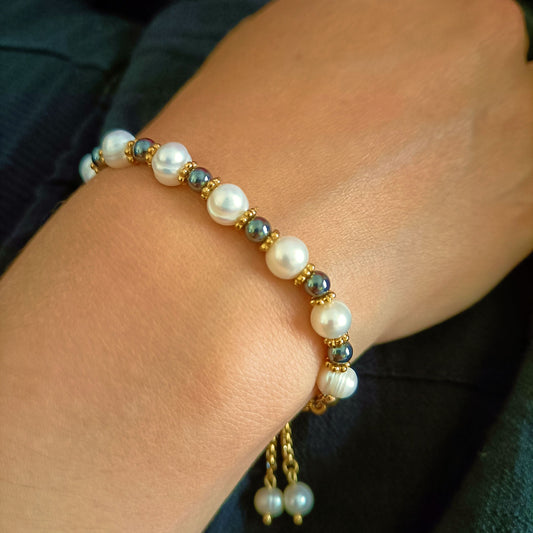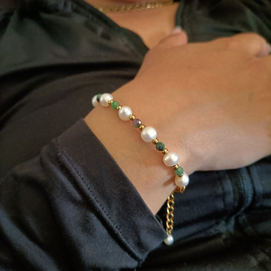 Pulseira Dunne - em pérolas naturais e aço inoxidável