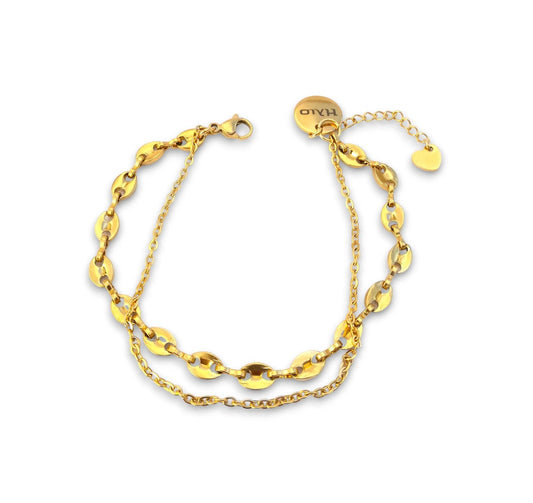 Tornozeleira Coffee Bean - em aço inoxidável dourado