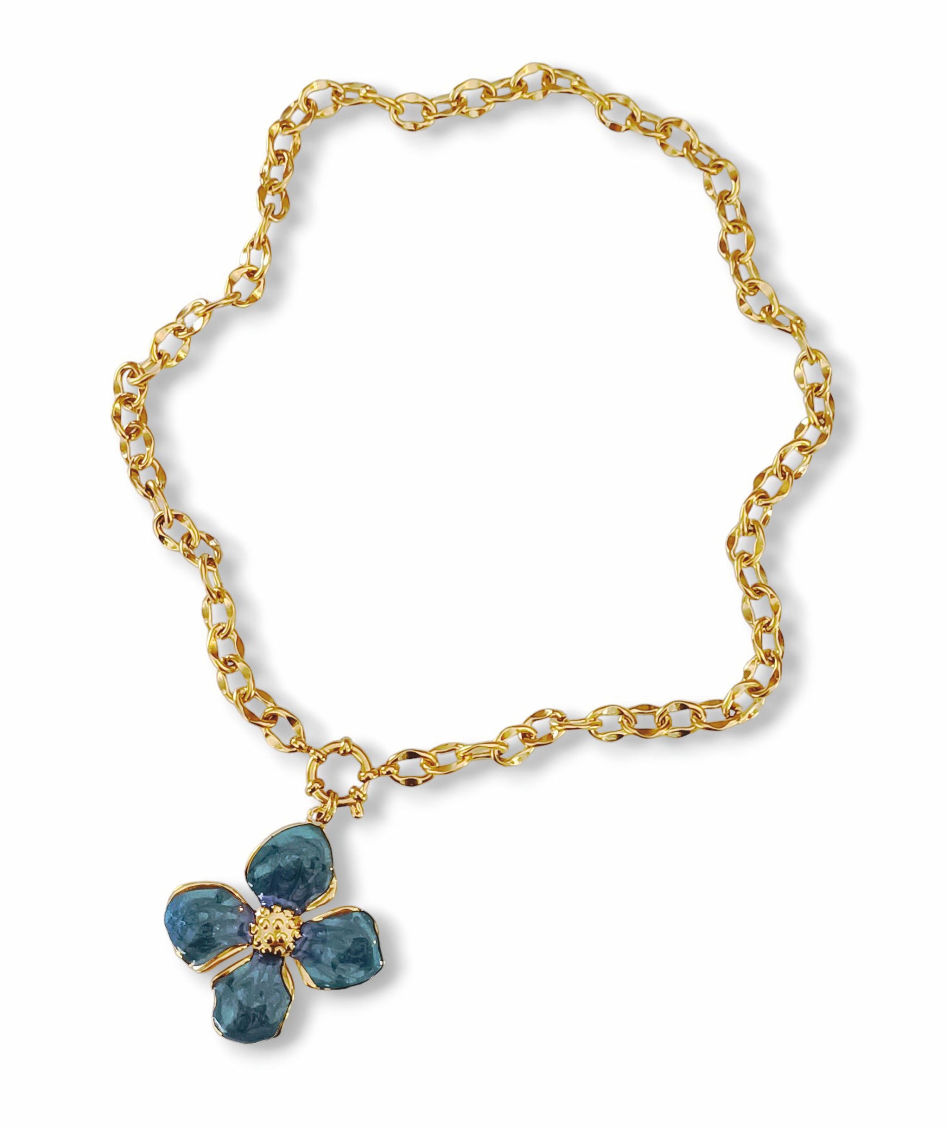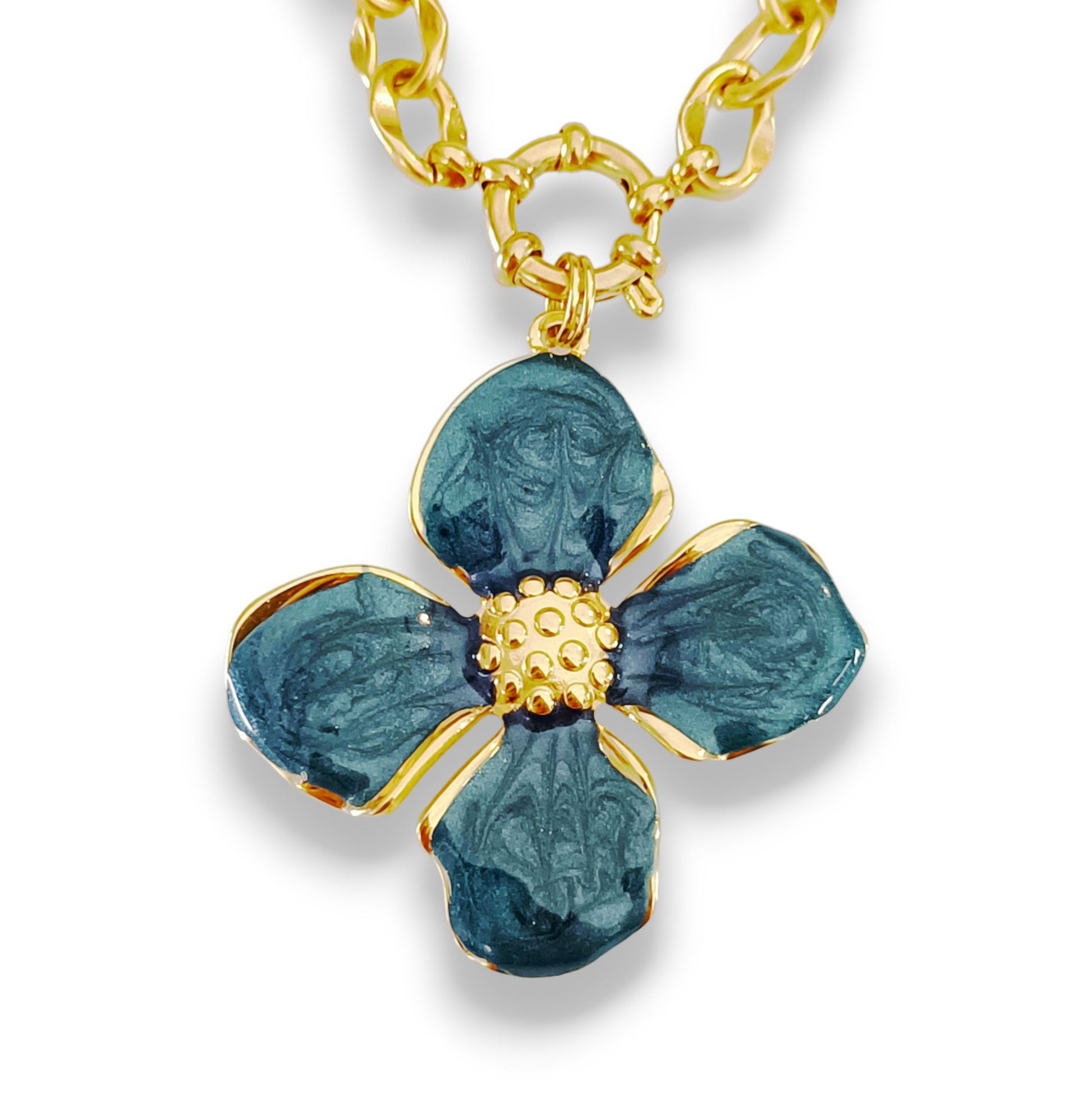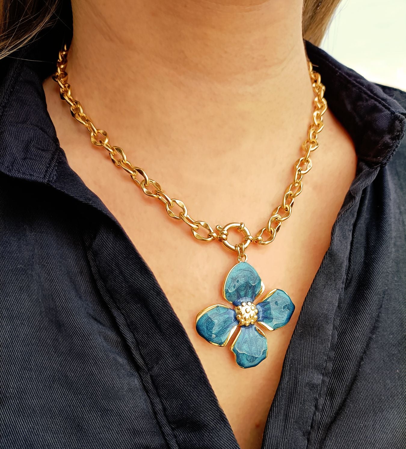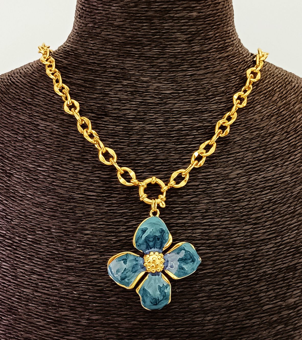 Medidas do pendente flor: 30 mm x 30 mm (aço inoxidável e esmalte).