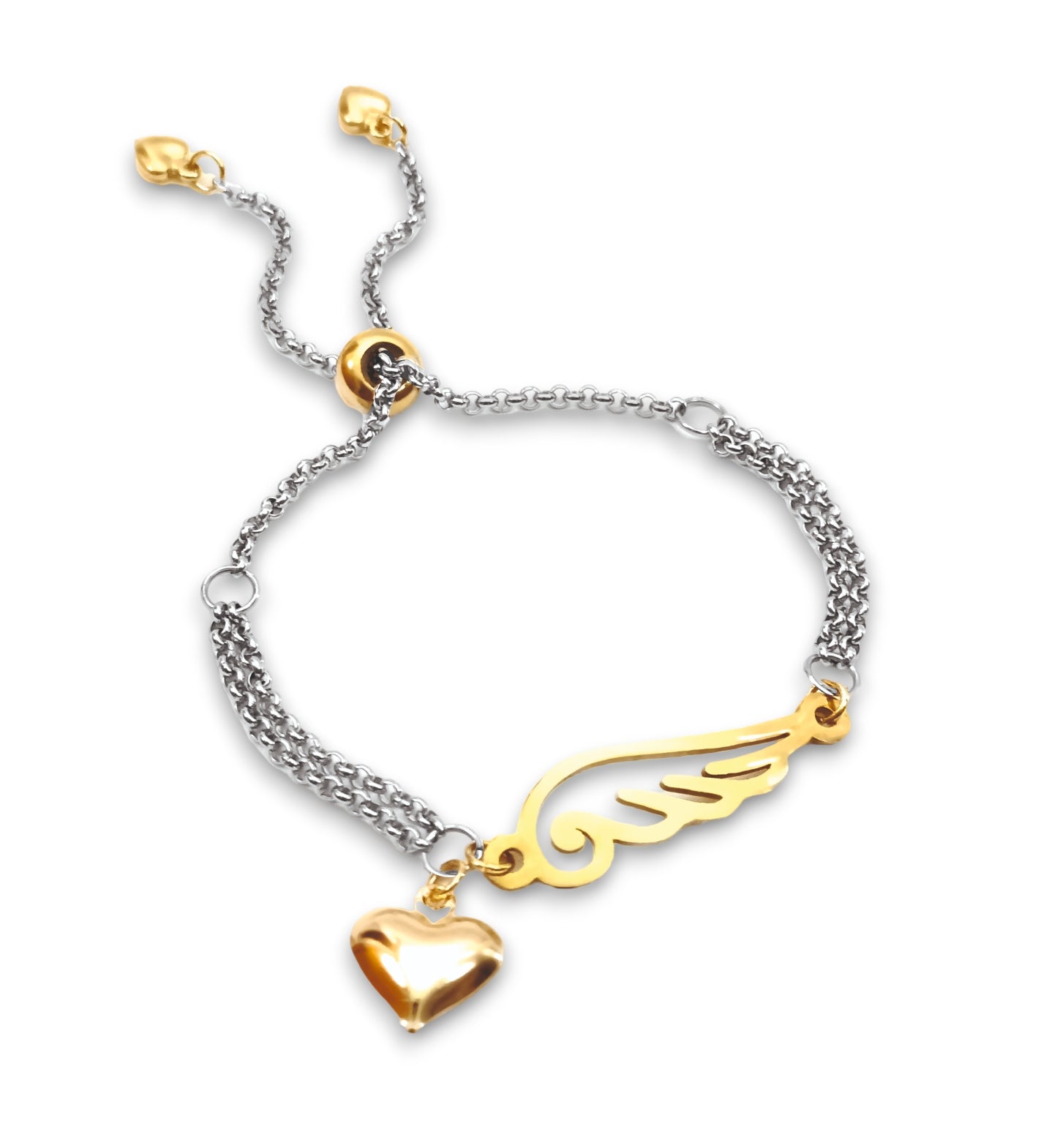 Conjunto Colar e Pulseira Angel of Love Gold - em aço inoxidável