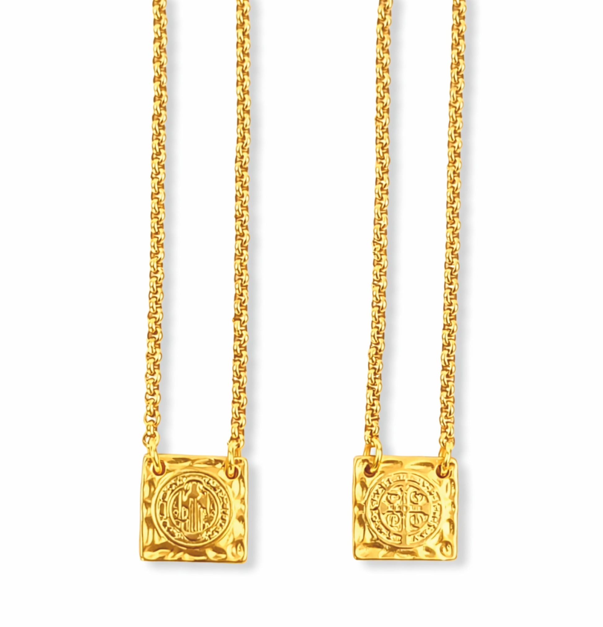 Escapulário St. Benedict`s - em aço inoxidável dourado