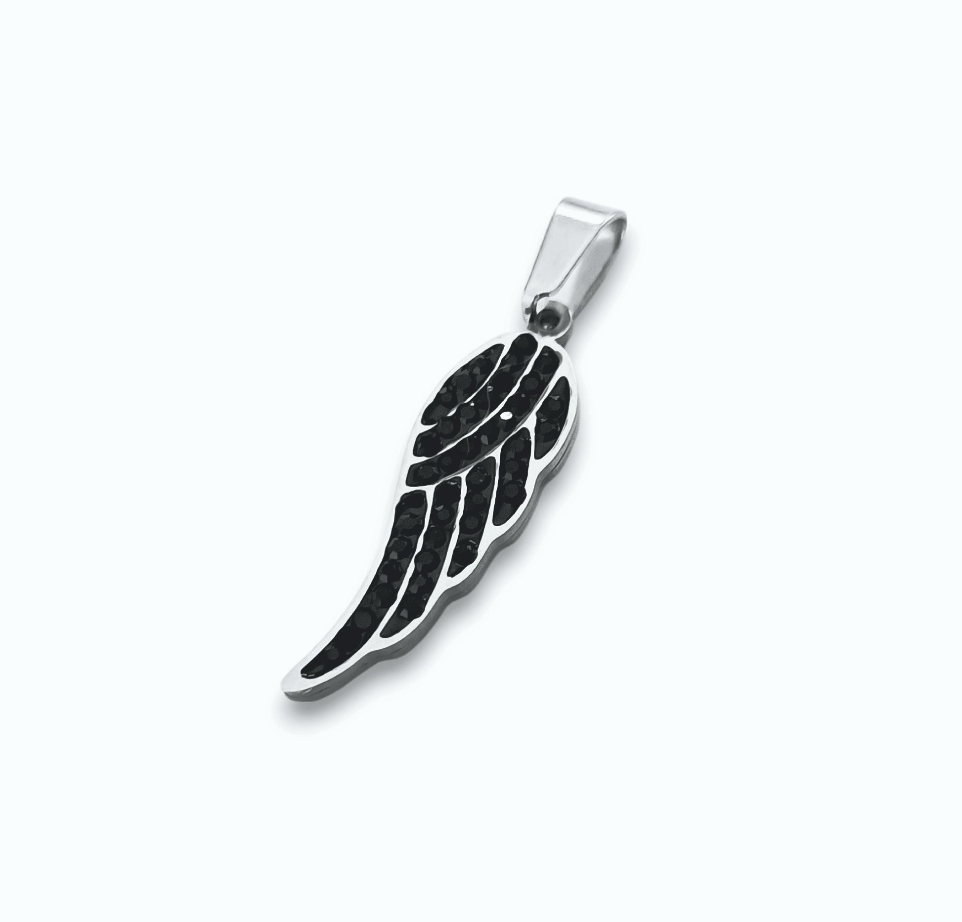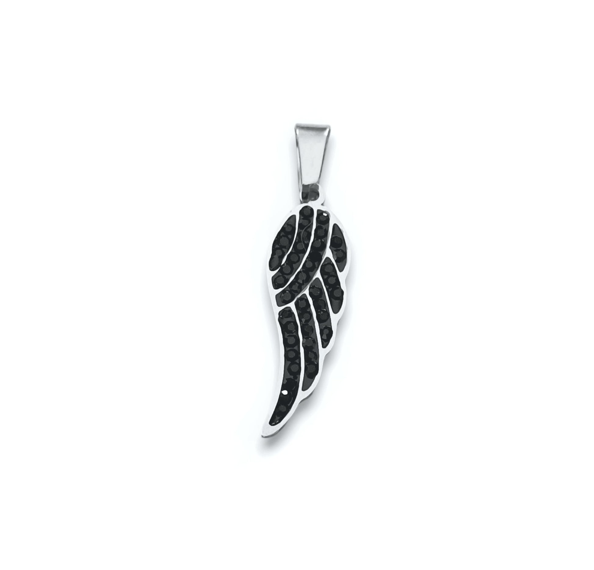 Pendente Asa Brilhantes Preta - em aço inoxidável